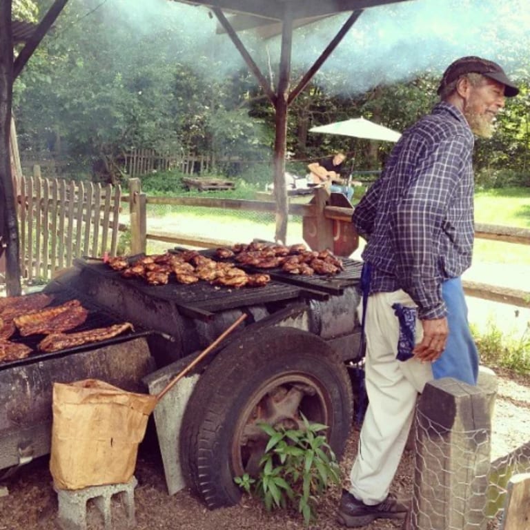 Later that summer, a group of us road-tripped to Vermont to check out Curtis' BBQ. I’ll never forget pulling up and seeing him outside under a tin roof, cooking ribs and chicken on a chain link fence over a 300-gallon oil drum. I watched in awe as he basted the meats with a mop from a 5-gallon bucket. My only experience with ribs was from Chinese restaurants, which had little meat. This was a whole new experience, and I loved the food and the vibrant atmosphere.